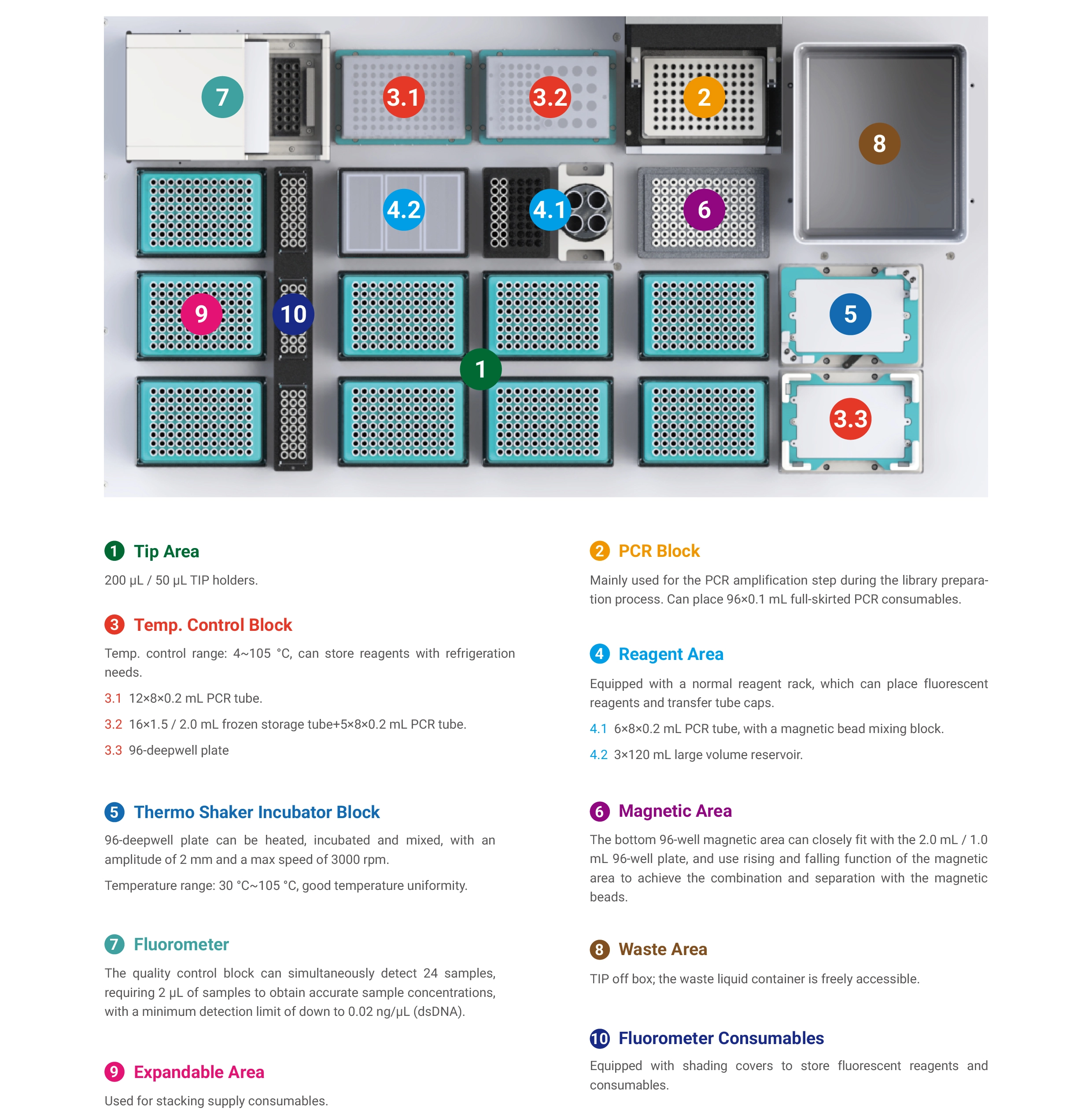 | Temperature control block | Temperature control uniformity: ≤1 °C @55 °C |