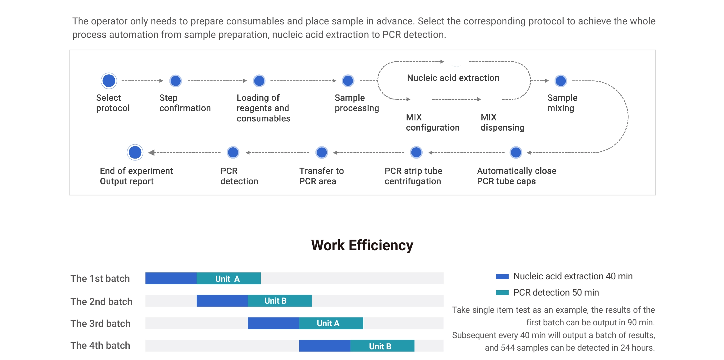 | Extraction performance | Extraction time: according to the reagent solution, generally 25~30 min / time |